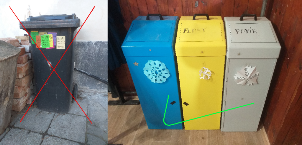 Jako první krok jsme již před lety zavedli do klubovny odpadní třídící kontejnery (abychom všechno jen neproháněli kamny nebo nesypali do popelnice). Musím říci, že to je úspěšná věc, myslím, že třídíme odpovědně a zvykli jsme si na to – věřím, že toto je normální pro většinu rodin a děkujeme za to.